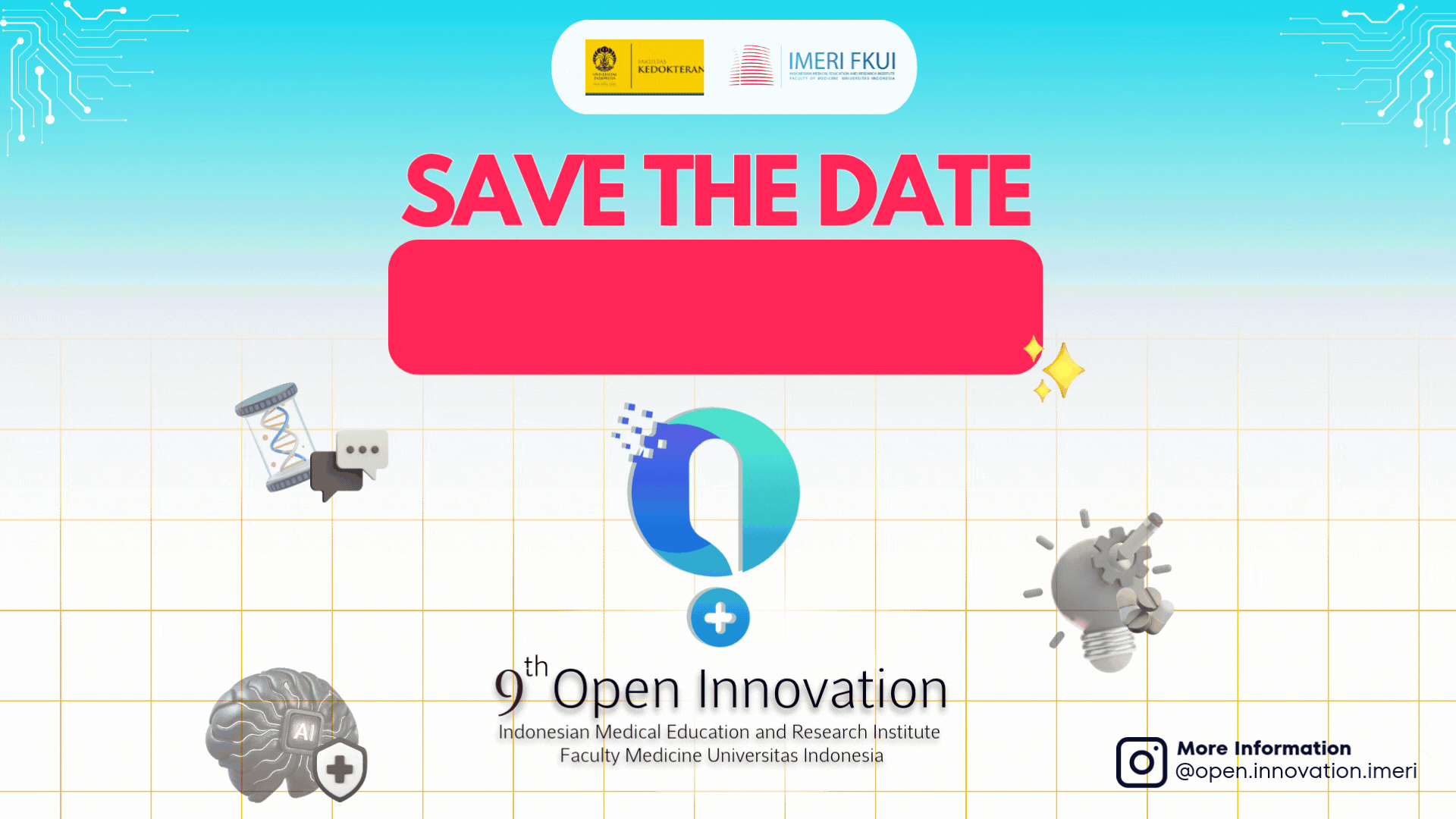 The 9th OPEN INNOVATION IMERI FKUI 2025 hadir dengan pendekatan baru yang lebih kolaboratif, mengedepankan diskusi partisipatif, kurasi ide, serta relevansi terhadap kebutuhan nyata masyarakat. Melalui Open Discussion on Health Innovation, sebuah forum terbuka yang tidak hanya mewadahi gagasan, tetapi juga mendorong kolaborasi lintas sektor dan kurasi ide-ide yang aplikatif, kami mengundang para inovator, peneliti, praktisi, dan akademisi untuk bersama-sama menjawab tantangan kesehatan di Indonesia dengan solusi yang kreatif, implementatif, dan berdampak nyata. Kegiatan ini akan melibatkan anggota Klaster IMERI, Dinas Kesehatan (Jabodetabek), akademisi dan praktisi kesehatan, industri kesehatan dan teknologi, lembaga pendidikan, hingga masyarakat umum (peserta open innovation terpilih).